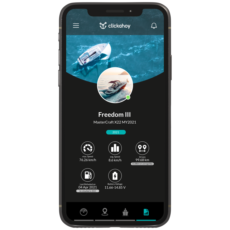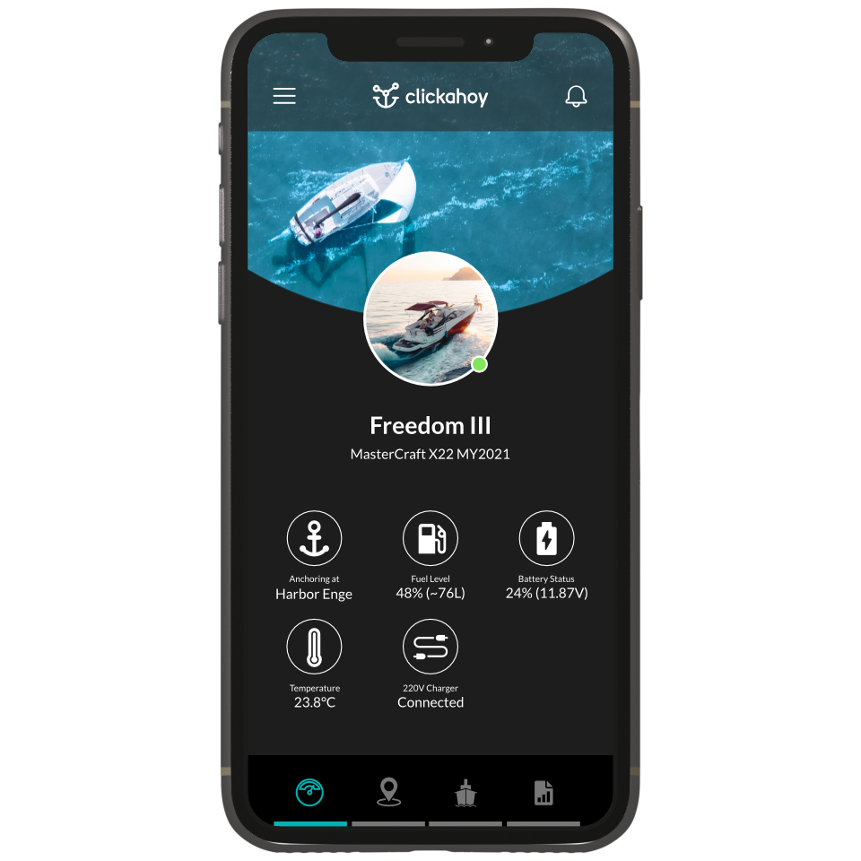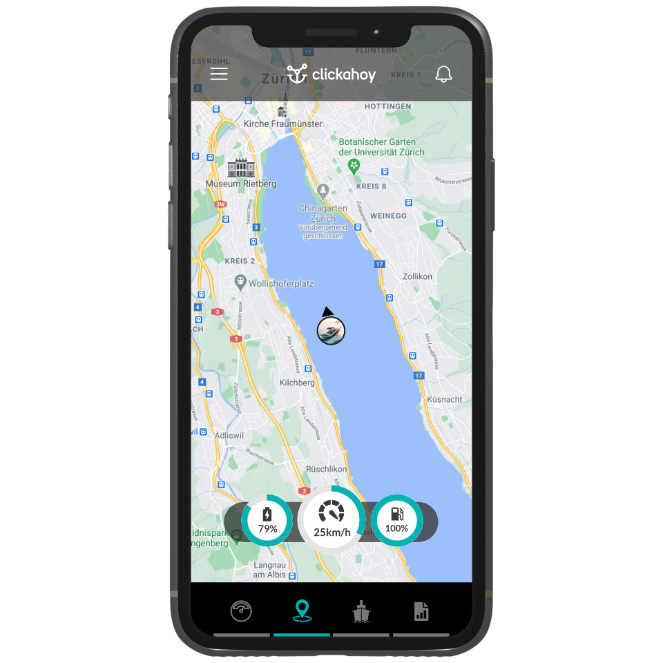 Whether sports boat, motor yacht, sailboat, or electric ship. Simply get equipped with the clickahoy computer, download the mobile app or log in via dashboard on clickahoy.io and benefit from more safety, control and comfort.